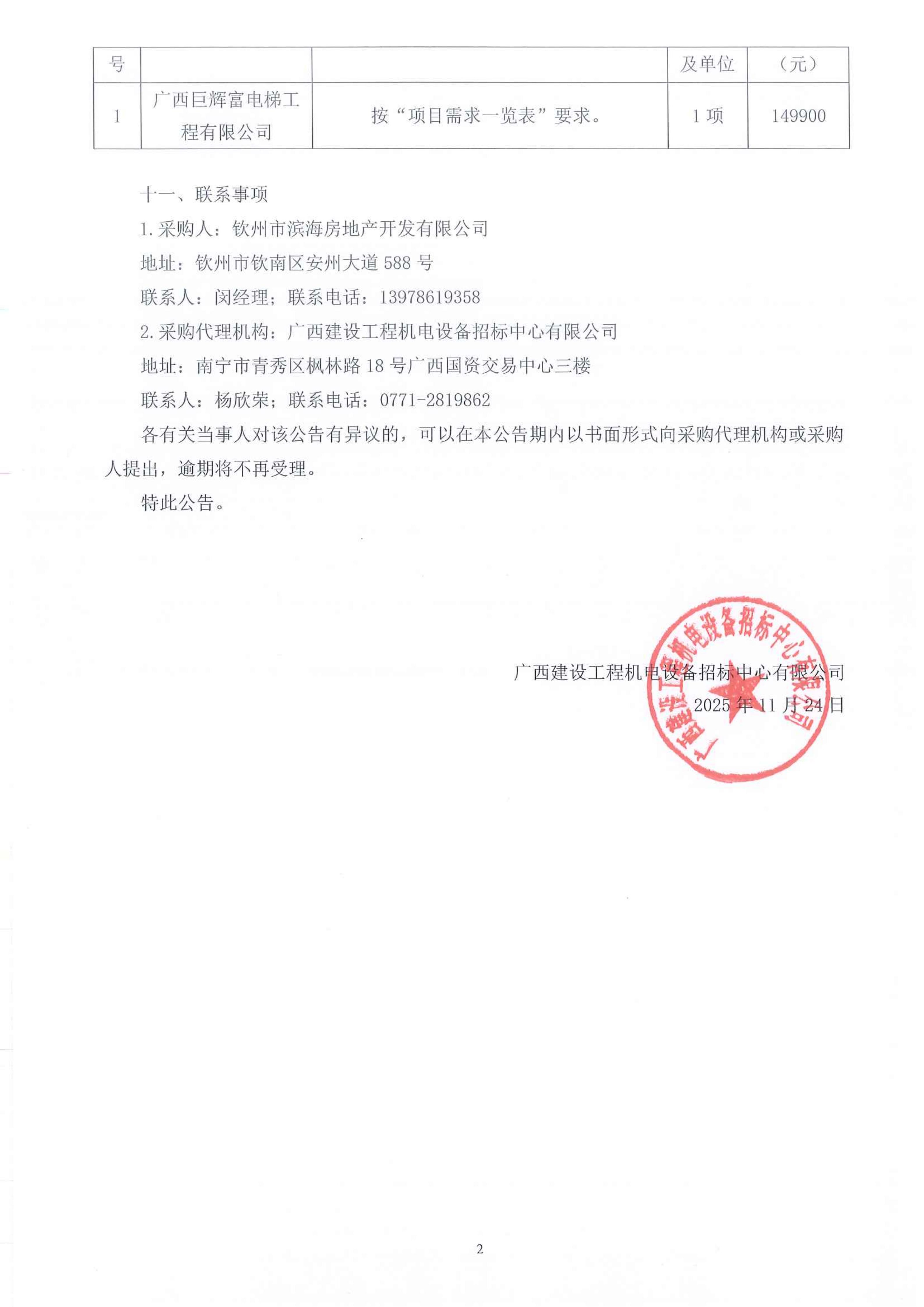 茂盛小區(qū)電梯檢修采購項目【項目編號:HC(ZB6)2025051Y】 成交結(jié)果公告