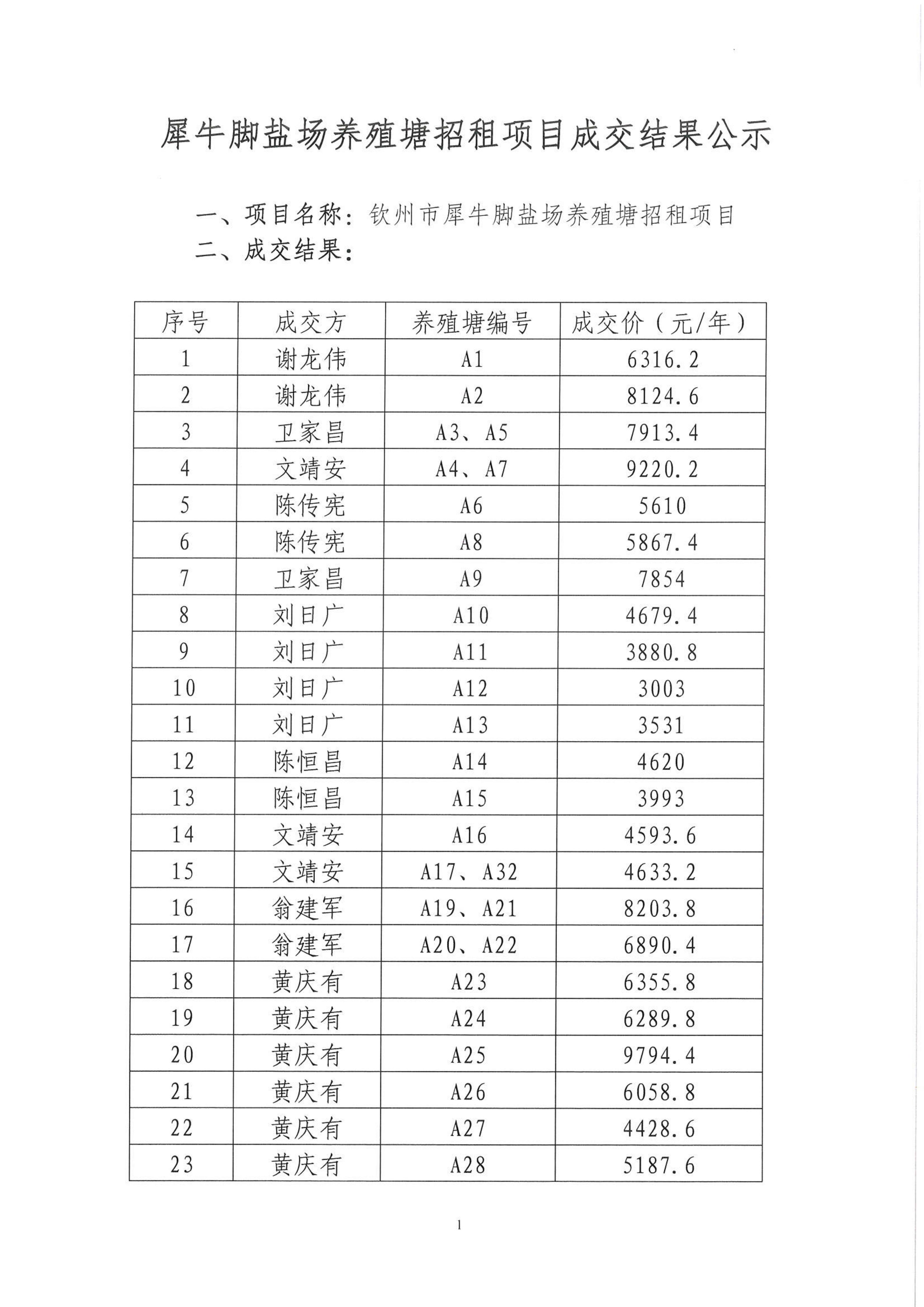 犀牛腳鹽場養(yǎng)殖塘招租項(xiàng)目成交結(jié)果公示