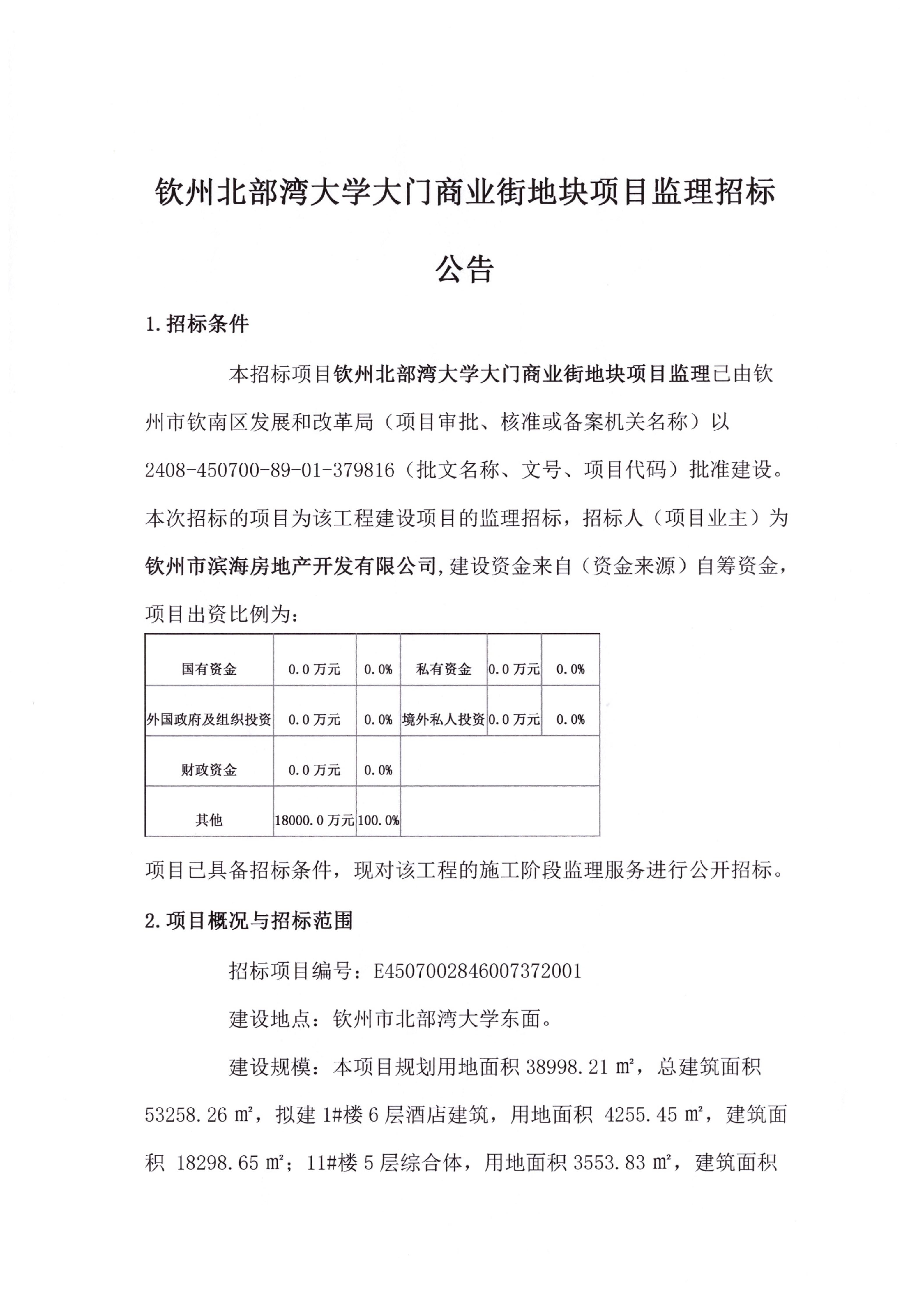 欽州北部灣大學(xué)大門商業(yè)街地塊項(xiàng)目監(jiān)理招標(biāo)公告