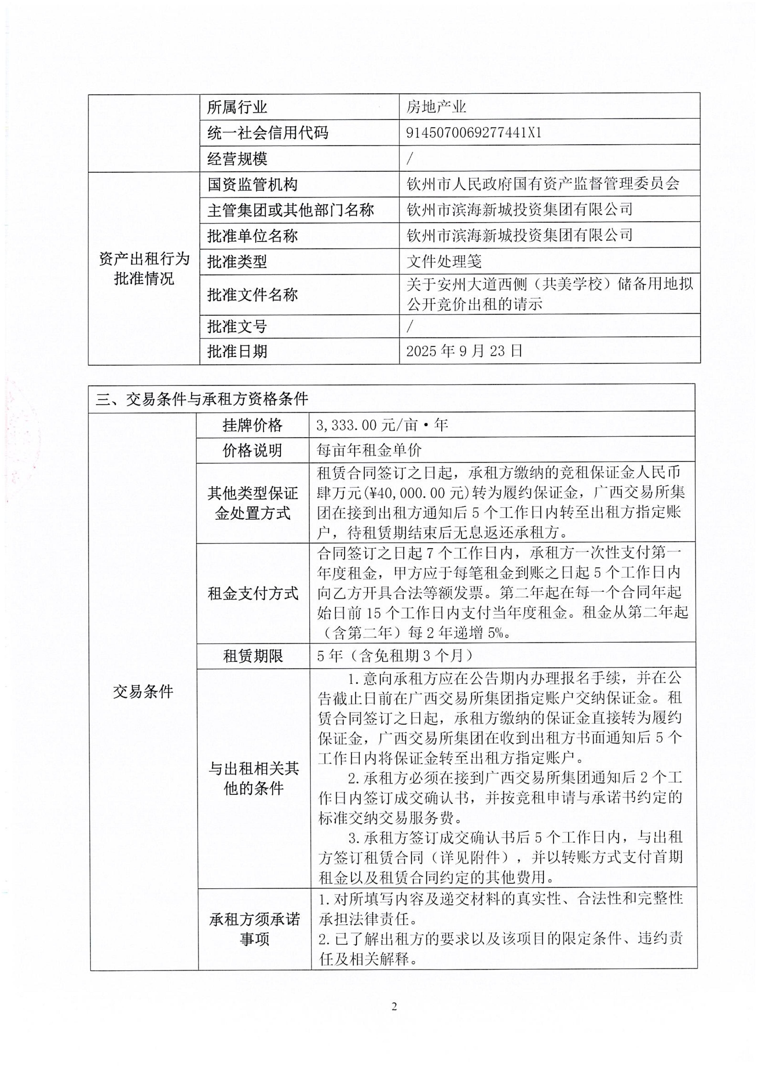 欽州市欽南區(qū)安州大道西側(cè)(共美學(xué)校)儲備用地公開招租項目